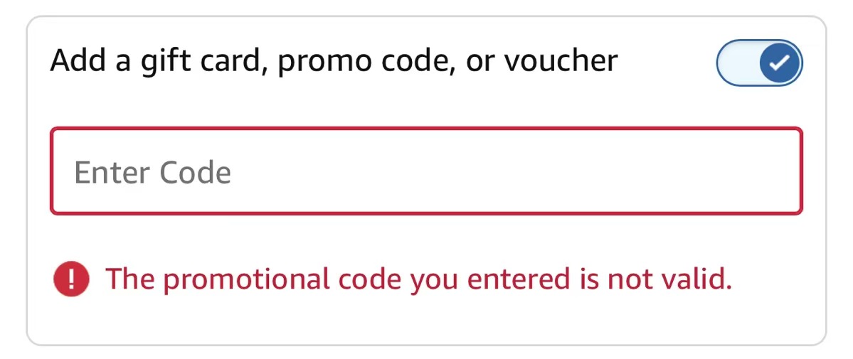 如果在输入折扣码点击旁边的 “→” 符号或者 “apply” 按钮之后出现 “The promotional code you entered is not valid”,先检查一下 code 码是否输入错误,如果没有输入错误那就是 code 码已经过期了;
