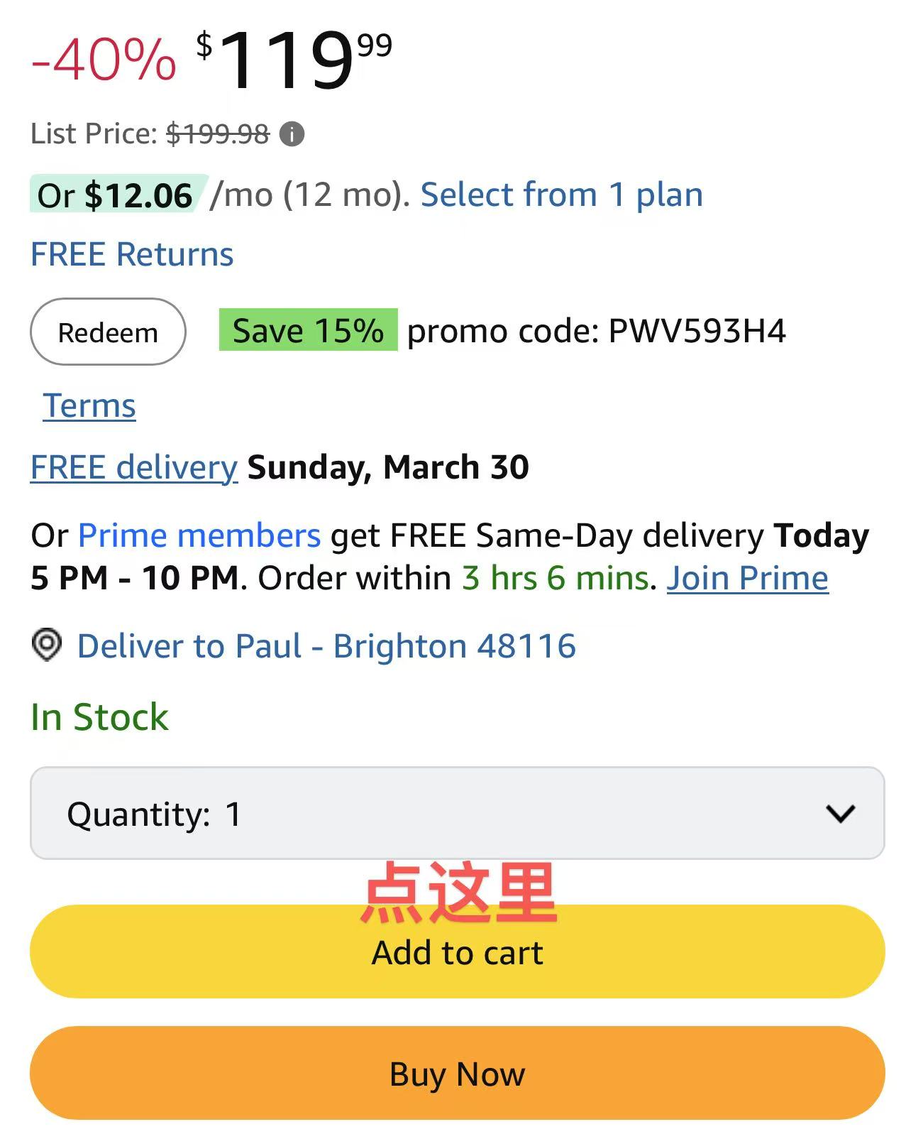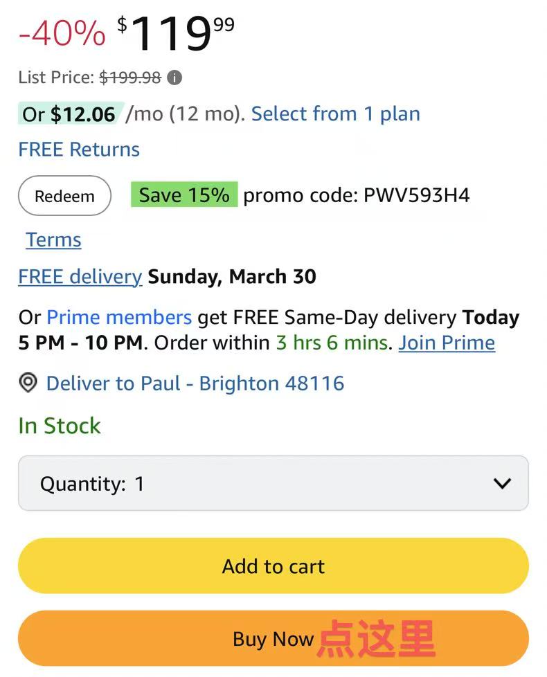 第二步:跳转到 Amazon 页面后,有 Coupon 的话就先点击激活 Coupon,然后再点击 Buy Now 按钮。